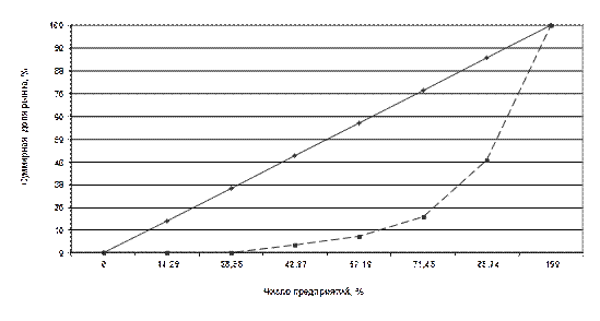 Индекс Джини составит: Sост= Кконц= Таким образом, анализируемый товарный рынок является высококонцентрированным.