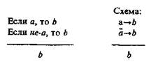 Формула: Формула является законом логики. В этом умозаключении суждение b истинно независимо от того, утверждается или отрицается а. Примером такого умозаключения является следующее рассуждение:
