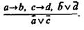 В предыдущих схемах, соответствующих четырем видам дилеммы, во второй (разделительной) посылке союз «или» взят в соединительно-разделительном смысле, т. е. взята нестрогая дизъюнкция (v). Будут ли формулы алгебры логики, соответствующие дилеммам (четыре вида), тождественно-истинными, если союз «или» употребляется в строго разделительном смысле, т. е. если взята строгая дизъюнкция (v)? Являются ли законами логики следующие формулы: 1) 2) 3) 4) (Так как конъюнкция связывает «теснее», чем импликация, то скобки можно опустить.) Автором этой книги показано5, что независимо от того, какая дизъюнкция (строгая или нестрогая) входит в соответствующие формулы, простым дилеммам (конструктивной и деструктивной) соответствуют законы логики. Сложным дилеммам (и конструктивной, и деструктивной) соответствуют законы логики лишь в том случае, если, союз «или» рассматривается как нестрогая дизъюнкция. Но в ходе рассуждения, построенного в форме сложной дилеммы, человек употребляет именно строгую дизъюнкцию, ибо перед ним две взаимоисключающие возможности (причем обе они нежелательны). Это несоответствие возникло из-за отсутствия полного совпадения смысла союза «если... то» и смысла материальной импликации (в двузначной логике). Некоторые логики под дилеммой понимают такое умозаключение: