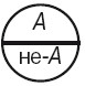 3 – противоречие. В отношении противоречия (контрадикторности) находятся такие два понятия, которые являются видами одного и того же рода, и при этом одно понятие указывает на некоторые признаки, а другое эти признаки отрицает, исключает, не заменяя никакими другими (напр., А – белая краска, тогда понятие, находящееся с ним в отношениях противоречия, следует обозначить не-А (не белая краска). Круг Эйлера в этом случае делится пополам и между ними нет никакого третьего понятия.