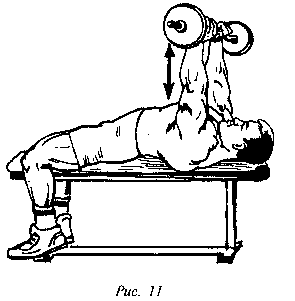 Жим лежа узким хватом Задействуются все три головки трицепса (рис. 11).