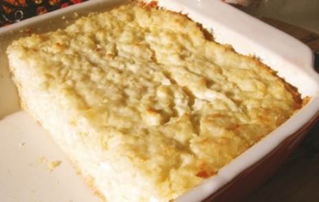 Запеканка рисовая Готовим вязкую кашу, охлаждаем ее (60°С), добавляем в нее сырые яйца, сахар, размешиваем, выкладываем на сковороду, смазанную маслом и посыпанную молотыми сухарями. Слой каши не более 4 см, выравниваем поверхность и смазываем сметаной. Запеканку ставим в духовку и запекаем до образования румяной корочки. Готовую запеканку нарезаем на порции, при подаче на стол поливаем растопленным сливочным маслом или сметаной.
