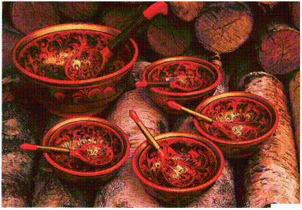anything may come in handy utensils Особые прялки-донца с инкрустацией или росписью делали в городе Городцё на Волге. Но разговор о них в этой книге ещё впереди. У практичного хозяина всякое лыко в строку, в работу идут все части дерева: из луба резали всевозможную утварь, из корней, ветвей плели изящные и ловкие корзины. Удивительно красивые и удобные вещи русские крестьяне делали из берёсты (специально обработанной берёзовой коры). Во всех изделиях из дерева, сделанных народными умельцами, ясно видно высокое техническое и художественное мастерство. Удивительно, как приспособлено всё, что выходит из-под рук мастеров, к быту народа, к окружающей природе. Жива и сейчас деревянная посуда: горит золотом, рдёет алыми цветами. Поистине - на старое глядят - новое творят. В современной деревне, конечно, стало меньше резных и расписных изделий из дерева. Но, может быть, сейчас они как никогда радуют нас. На ярмарках, выставках, в музеях
