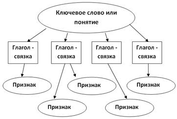На доске можно нарисовать значок корзины, в которой условно будет собрано все то, что все ученики вместе знают об изучаемой теме. «Денотатный граф» Денотатный граф - [от лат. denoto — обозначаю и греч. — пишу] — один из графических приёмов ТРКМ. Денотатный граф предлагает способ вычленения из текста существенных признаков ключевого понятия.
