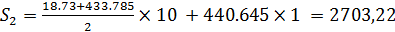 Производим проверку соблюдения условия величин площадей опор слева и справа от стенки. Площадь опоры слева Опора справа условно состоит из трех трапеции и прямоугольника. Вычисляем их площади