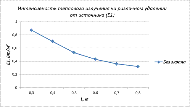 Интенсивность теплового излучения на различном удалении от источника (Е1)