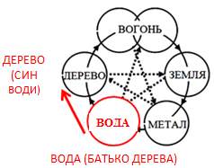 | Ïîòð³áíî ïðèãí³÷óâàòè àêòèâí³ñòü åëåìåíòà "ÂÎÄÀ" (Áàòüêî åëåìåíòà"Äåðåâî"). Çìåíøåííÿ éîãî àêòèâíîñò³ îáóìîâèòü çìåíøåííÿ àêòèâóþ÷îãî âïëèâó íà Ñèíà (åëåìåíò "Äåðåâî") ³ âïëèâó ïðèãí³÷åííÿ íà Âíóêà (åëåìåíò "Âîãîíü").