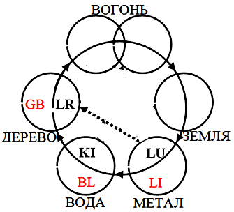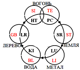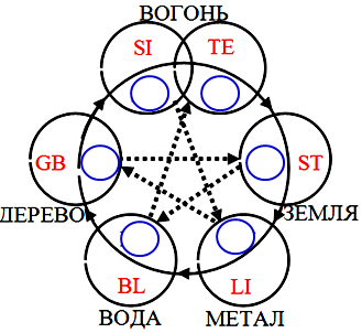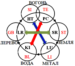 Çã³äíî òðàäèö³éíèì çàêîíàì, ÓÊÀÇÀͲ çâ'ÿçêÈ ÂÏËÈÂÓ Â²ÄÊÐÅÌËÅÍÎ ²ÑÍÓÞÒÜ ì³æ îðãàíàìè (ñèñòåÌÀìè) ãðóïè²ÍÜ (LU–KI–LR, KI–LR–HT, KI–LR–PC, HT–PC–SP, PC–SP–LU) ³ ãðóïè ßÍ (LI–BL–GB, BL–GB–SI, GB–SI–TE, SI–TE–ST, TE–ST–LI (äèâ. êîíöåïö³¿ Ó-ѲÍ).