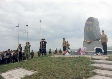 Описание: Гранитная стела (из Хромтау) на ступенчатом постаменте Надпись: "Жертвам репрессий 1930 - 50 годов от благодарных потомков. Смерть ваша безвинна. Память о вас вечна" (на казахском и русском языках) Дата открытия: 29 сентября 1990 г. Авторы: архитекторы Б. Егимбаев, В. Тертерян Установлен по инициативе Облисполкома и горисполкома Установлен на средства местных жителей