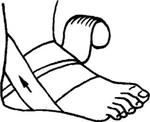 Пов'язка на гомілку може бути виконана як проста спіралеподібна, що проходить від кісточки до коліна. Пов'язку на п'ятку виконують, як правило, за типом «черепашачої» (мал. 22). Бинтування починають з виступаючої частини п'ятки, а наступні ходи ведуть вище і нижче перших, частково їх перекриваючи. Закріпити всі тури бинта можна вісімкоподібними чи косими ходами через підошву.