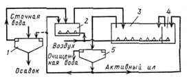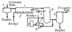 Б искусственных условиях очистку проводят в аэротенках или биофильтрах. Очистка в аэротенках. Аэротенкаади называют железобетонные аэрируемые резервуары. Процесс очистки в аэротенке идет рис. 11-70. Схема установки для биологической очистки: 1 — первичный отстойник; 2 — предаэратор; 3 — аэротенк; 4 — регенератор; 5 — вторичный отстойник