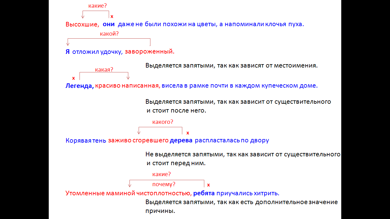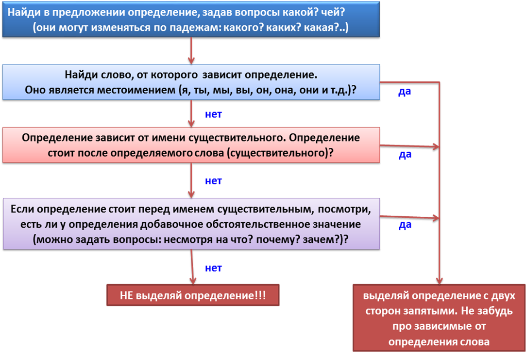 Определение - это второстепенный член предложениях, который отвечает на вопрос какой? чей? óПомни! На эти вопросы отвечают ДВЕ части речи: ü причастие ü прилагательное Amp; Правило Определение в зависимости от позиции и слова, от которого оно зависит, может выделяться запятыми. óПомни! Причастие и прилагательное может быть с зависимыми словами (то есть от причастия и прилагательного можно задать вопросы к другим словам)! Поэтому если ты выделяешь определение запятыми, то обособляй весь оборот (причастие или прилагательное + зависимые от них слова). Различай!