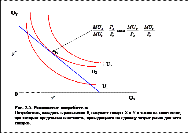 Теперь на основе полученных результатов сформулируем условия максимизации удовлетворения потребителем или условия его равновесия.