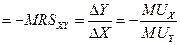 Во-вторых, в точке равновесия, поскольку это точка касания линии бюджетного ограничения и кривой безразличия, наклон кривой безразличия равен наклону линии бюджетного ограничения. Как мы отмечали ранее, наклон кривой безразличия выражается предельной нормой замещения умноженной на -1, то есть: