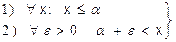 Определение 6. Наименьшее из чисел ограничивающих сверху (снизу) множество Х называют точной верхней (нижней) гранью множества Х. Пусть a,-точная нижняя, а b - точная верхняя грани множества Х.