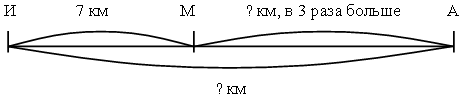 Р е ш е н и е: 7 ∙ 3 + 7 = 28 (км) О т в е т: 28 км. II с п о с о б.