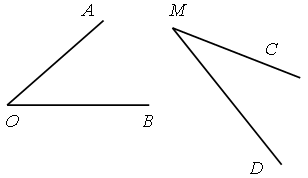 1. В ы п о л н е н и е задание № 310. – Рассмотрите выражения в пункте 1. – Что у них общего? (Это произведения, в которых первый множитель – трехзначное число, а второй множитель – число 6.) – Чем они отличаются? (Первый множитель в каждом выражении увеличивается на единицу.) – Как вы думаете, как будет изменяться значение произведения в каждом следующем выражении? На сколько каждое следующее значение произведения больше предыдущего? (На 6.) – От чего это зависит? (Это зависит от второго множителя.) – Попробуйте доказать эту закономерность. 138 = 137 + 1. Значит, 138 · 6 = (137 + 1) · 6 = 137 · 6 + 1 · 6. – Какое свойство умножения вы использовали? (Распределительный закон умножения относительно сложения.) – Найдите значения данных выражений и проверьте свое предположение. 2. В ы п о л н е н и е задания № 306. – Какие геометрические фигуры изображены? – Какую фигуру называют углом? (Углом называется фигура, которая состоит из точки – вершины угла – и двух различных полупрямых, исходящих из этой точки, сторон угла. Если стороны угла являются дополнительными полупрямыми одной прямой, то угол называется развернутым.) – Как можно построить угол? (Проведем два луча (ОА и ОВ), выходящих из одной точки (рис. 1). Получим геометрическую фигуру, которая называется углом. Лучи ОА и ОВ называются сторонами угла, точка О – вершиной угла. Угол обозначается знаком « Два угла называются равными, если их можно наложить один на другой так, чтобы они совпали. На рисунке 2 углы АОВ и СМD равны, так как при наложении они совпадут. Запишем: