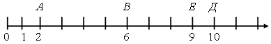 2. В ы п о л н е н и е задания № 342. – Что изображено на данном рисунке? (Числовой луч.) – В чем его особенность? – Восстановите на числовом луче единичный отрезок. – Так как между точками с числами 6 и 10 должно находиться 4 единичных отрезка, пробуем отложить на нем 4 отрезка, равных отрезку между точкой 10 и ближайшей отмеченной точкой на луче. Такая проверка показывает, что этот отрезок равен единичному. Откладываем равный ему отрезок вправо от начала луча и ставим число 1. – Обозначьте отмеченные на луче точки буквами и определите их координаты.