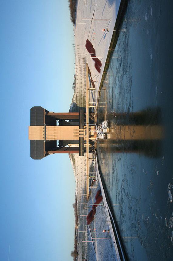 б Еще один из судоподъемников на Центральном канале в Бельгии: а – нижний бьеф; б – верхний бьеф