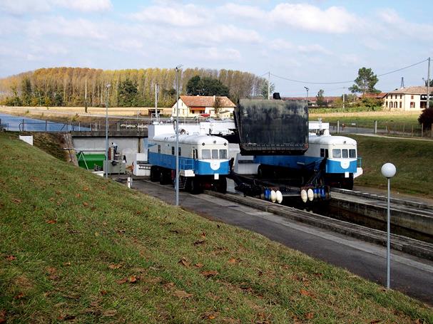 Локомотивы наклонного шлюза в Монтеш на боковом канале Гаронны (Франция)