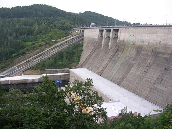 Орлицкая плотина. Наклонный судоподъёмник на заднем плане ЯПОНИЯ