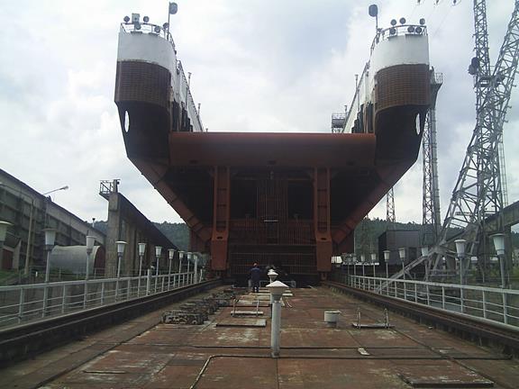 В России существует единственный наклонный неуравновешенный судоподъёмник – Красноярский. Технические параметры судоподъёмника Красноярской ГЭС: