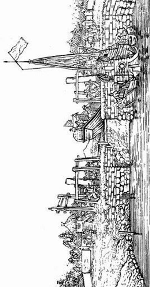 Древний китайский шлюз В Европе вплоть до XIII века судоходство осуществлялось по водным путям в их естественном состоянии. Оно зависело от уровня воды в реках, времени года, наличия препятствий (порогов, перекатов). Для преодоления препятствий научились строить плотины, задерживающие воду и повышающие глубину перед плотинами. В плотинах или возле них устраивали проемы, которые закрывались во время поддержания напора затворами или воротами. Когда ворота открывали, вода из верхнего бьефа вместе с судами или плотами в виде волны попуска перемещалась вниз через мелководные участки реки. После пропуска судов ворота или затворы возвращались обратно. Такие сооружения называются полушлюзами, они впервые в Европе были применены в Германии в XIII веке на реке Альстер. Полушлюзы с затворами в виде горизонтальных брусьев (шандор) или вертикальных брусьев (спиц) использовались при напорах до 1 м и ширине судового отверстия до 12 м. Затворы в виде двустворчатых ворот с вертикальными осями вращения были построены в Германии в XIV веке – полушлюзы на реке Дельфенау, притоке Эльбы. Судоходство с использованием волны попуска требовало большого расхода воды и отнимало много времени. Кроме того, неустановившееся движение воды через открываемые отверстия было небезопасно. Когда в Европе сообразили устраивать шлюзы точно не известно. Расположив полушлюзы на некотором расстоянии друг от друга и попеременно открывая и закрывая затворы, можно наполнять пространство между полушлюзами до уровня верхнего бьефа или опорожнять его до уровня нижнего бьефа. Термин «шлюз» произошел, по-видимому, от голландского слова sluis или латинского exclude – отделяю, удерживаю. В широком смысле термин шлюз означает устройство для ограничения по количеству и времени чего-либо текущего. Говорят о воздушных, рыбопропускных и прочих шлюзах. Процесс прохождения судна через шлюз продолжительнее, зато безопаснее, чем через полушлюз. Применение камерных шлюзов для судоходства позволяет разбить несудоходную реку водонапорными плотинами на ряд ступенчатых участков с различными горизонтами воды и достаточными глубинами и при помощи расположенных в плотинах шлюзов переводить суда из одного участка в другой.