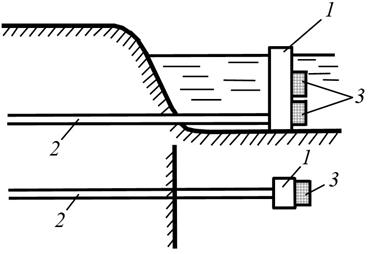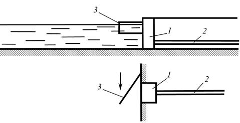 Водозабор в ковше или подходящем канале: 1 – оголовок; 2 – линия всасывания или самотечная линия; 3 – плоская сетка