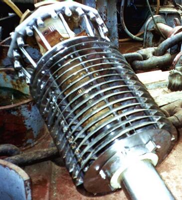 Сетчатый струереактивный барабан 1 – труба; 2 – промывное устройство; 3 – сетка; 4, 5 – подшипники; 6 – всасывающая линия