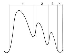 Рис.11. Последняя Маха-юга – рефлекторный призрак той Маха-юги, которая могла произойти как настоящая 1) Сатиа-юга; 2)Двапара-юга; 3)Трета-юга; 4)Кали-юга; а – максимум последнего оледенения 18 тысяч лет тому назад, центральная точка Кали-юги прошлой Маха-юги; б – температурный оптимум, наблюдавшийся от 7 до 4 тысяч лет тому назад; в – малый ледниковый период; – стрелкой указан момент космической трагедии со столкновением прапланет Луны и Меркурия, это событие сбило ход наступавшей Маха-юги, которая всё же возобновила свою деятельность в вырожденном виде.