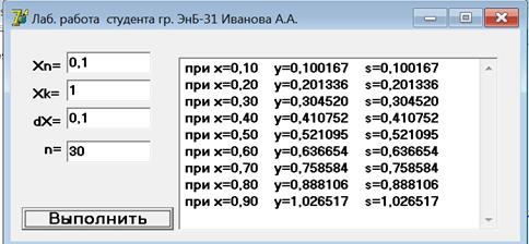 Пример написания программы. Задание: написать и отладить программу, которая выводит таблицу значений функции y(x) = sh(x) и ее разложения в ряд для X изменяющихся в интервале от Xn до