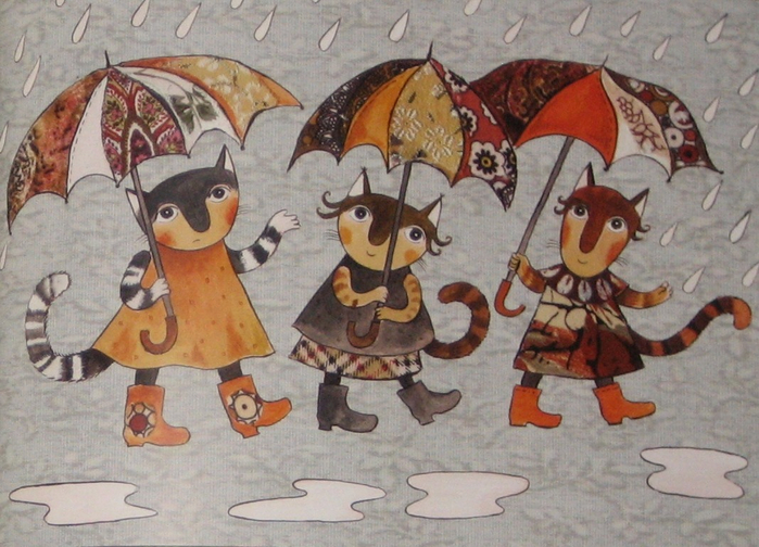 Виталия Бармак Три сестренки-кошки Вышли погулять Под сверкающим дождем.