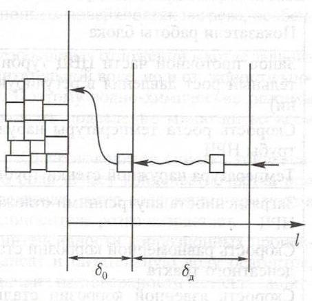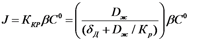 Рис. 1.2. Схема процесса собственно кристаллизации вещества. Константа скорости реакции зависит от вещества, коэффициента диффузии частицы в поверхностном слое В стационарном режиме