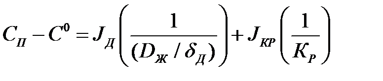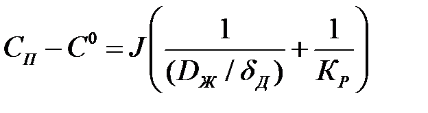 Коэффициент скорости кристаллизации определяется скоростью доставки примеси к месту кристаллизации и скоростью самого процесса кристаллизации. Если скорость доставки значительно меньше скорости реакции Введем понятие пересыщения раствора