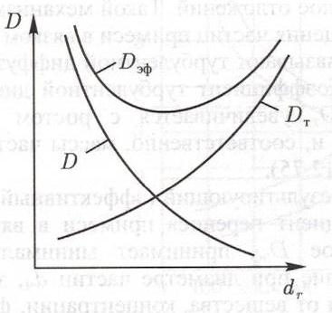 Зависимость диффузии от диаметра частицы показана на рис. 1.23: с увеличением диаметра коэффициент