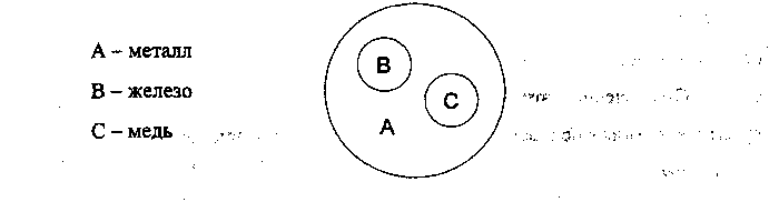 Б) КОНТРОЛЬНЫЕ РАБОТЫ Вариант 1 1. Формальная логика как наука, основные этапы ее развития. 2. Непосредственные умозаключения. Умозаключение обращения. Закон обращения. 3. Практическое задание. Для понятий черный цвет, отличная оценка, мудрый необходимо подобрать понятия, находящиеся в отношениях соподчинения, противоположности, противоречия. Изобразить эти отношения в круговых схемах Эйлера. Рекомендации. Необходимо по содержанию учебника найти раздел «Понятие» или «Имя» и более подробно прочитать параграф «Отношения между понятиями», обратить внимание на совместимые и несовместимые понятия, разобраться в их видах, терминах и круговых схемах. Пример. Соподчинение – это вид несовместимых понятий. Соподчинение (координация) – это отношение понятий, объемы которых полностью исключают друг друга, но объединяются в более широком по объему понятии. В таком отношении находятся, например, понятия «медь» и «железо», объемы которых включаются в объем более широкого понятия «металлы». Схема: