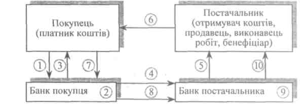 Б анк-эмитент переводит средства заявителя на счет «Расчеты за аккредитивами» в исполняющем банковые и сообщает ему об условиях акредитива. Аккредитив считается открытым после того, как осуществлено соответствующие бухгалтерские записи по счетам и послано уведомление об открытии и условиях акредитива. Банк-эмитент информирует исполняющий банк об открытии акредитива электронным сообщениям (электронной почтой), а последний сообщает об этом бенефициара в течение 10 рабочих дней. После отгрузки продукции (выполнение работ, предоставления услуг) бенефициар подает исполняющему банку нужные документы, что передбачені условиями акредитива. После тщательной проверки соблюдения всех условий банк списывает средства из аналитического счета «Расчеты за аккредитивами» и перечисляет их на счет бенефициара. Во всех аккредитивах предусматривается указание дать закінчення срока и места представления документов для платежа. Банки здійснюють контроль за сроком действия акредитива. По окончании срока действия акредитива средства из аналитического счета «Расчеты за аккредитивами» пересказываются банковые эмитенту и зараховуються на тот же счет, из которого они поступили. Схему расчетов с использованием аккредитивной формы наведено очерк. 2.5.