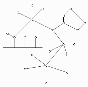 В сети с ячеистой топологией непосредственно связываются только те компьютеры, между которыми происходит интенсивный обмен данными, а для обмена данными между компьютерами, не соединенными прямыми связями, используются транзитные передачи через промежуточные узлы. Ячеистая топология допускает соединение большого количества компьютеров и характерна, как правило, для глобальных сетей. Достоинства данной топологии в ее устойчивости к отказам и перегрузкам, т.к. имеется несколько способов обойти отдельные узлы. 5. Смешанная топология. В то время как небольшие сети, как правило, имеют типовую топологию - звезда, кольцо или общая шина, для крупных сетей характерно наличие произвольных связей между компьютерами. В таких сетях можно выделить отдельные произвольно подсети, имеющие типовую топологию, поэтому их называют сетями со смешанной топологией: