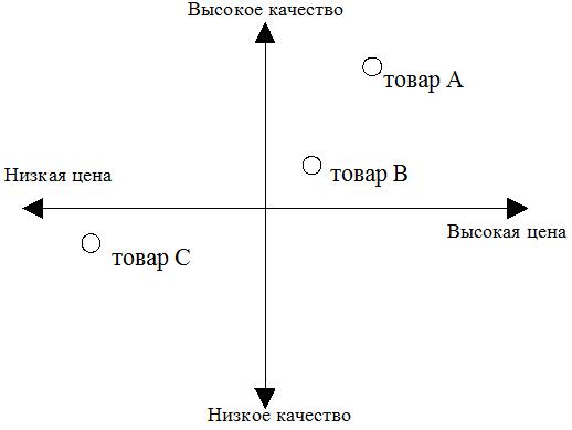 46.Позиционирование товара (услуги). Карта позиционирования Позиционирование — определение места конкретного товара по отношению к товарам конкурентов в сознании потребителей. Позиционирование товара необходимо для обеспечения преимущественного положения товара на рынке. Оно исходит из реального восприятия товаров потребителем и их предложений. Оно основывается на оценке потребительских достоинств товара, возможностях расширения круга потенциальных потребителей, фактора престижности товара, выделение его сильных сторон по отношению к товарам конкурентов. Позиционирование определяет характер восприятия фирмы целевыми покупателями. Стратегия позиционирования — это инструмент реализации стратегии дифференциации. Простейшим способом визуального представления позиционирования на рынке конкурентных товаров является использование двумерной карты для сравнения представлений потребителей о конкурирующих товарах по двум важнейшим рабочим показателям. Конкурентная карта может основываться на потребительском рейтинге каждой торговой марки по каждому параметру. Ее также можно составить по суждениям потребителей о схожести марок, по предпочтениям марок или «переключению» потребителей с одной марки на другую. Затем позиции этих товаров можно сравнить и определить, где на карте будет размещен идеальный товар для потребителя. Идеальная точка показывает сочетание двух показателей, которые больше всего удовлетворили бы потребителей. Если идеальные точки потребителей группируются вместе, они образуют потенциальный целевой сегмент по выгодам. Одной из опасностей конкурентных карт позиционирования товара является то, что незанятое место на поверхности карты может не означать новую возможность позиционирования. Оно может предлагать позицию, основанную на комбинации характеристик, которая никому не нужна («дыра в потребностях»). Компания, разрабатывающая и продвигающая на рынок товар в такую «дыру», может потерять огромные деньги, если нет достаточной реальной или потенциальной потребности в товаре, позиционируемом на рынке по-новому.