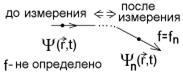 * Любой процесс измерения или взаимодействия может изменить состояние движения волновую функцию микрочастиц (см. рис.). До измерения неизвестно, какое конкретное значение величины f будет измерено. Известно лишь, что оно может оказаться любым из разрешенных значений fn, n = 1,2,3,… и движение частицы перейдет в состояние с волновой функцией Y n. Принцип квантовой суперпозиции: Любое состояние микрочастицы является суммой состояний, соответствующих всем разрешенным значениям любой из физических переменных f: