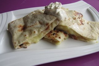 1. Кефир выливаем в чашку, добавляем к нему соль и соду, перемешиваем, всыпаем муку и замешиваем тесто. Тесто должно получится мягкое, не липнуть к рукам. 2. Делим его на 8 частей и раскатываем тонкие лепёшки, по величине вашей сковороды. 3. У меня 28 см.Обжариваем лепёшку на сухой сковороде с обеих сторон.Пока жарится вторая сторона, можно смазать другую сливочным маслом. 4. Снимаем лепёшку со сковороды и на одну половину намазываем картофельное пюре. Тут уже кто как любит - люблю потоньше, мой муж просит, чтобы картошки было побольше. 5. Закрываем другим краем. Всё это лучше сделать пока лепёшка тёплая, иначе она может лопнуть на сгибе. То же самое проделываем с остальными лепёшками. Всё! Готово! На всё ушло 40 минут.