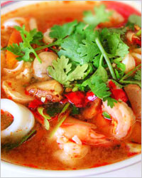 Самый знаменитый суп тайской кухни – том ям. Он одновременно кислый и острый, ароматный, освежающий и очень сытный. Его название означает «суп и салат со специями». Готовить том ям очень просто, если у вас есть лемонграсс, листья кафрского лайма, галангал, свежий кокос и рыбный соус. В Таиланде выпускается паста для супа том ям, облегчающая жизнь тем, кто уже не мыслит своей жизни без этого блюда. В её состав входят растительные ингредиенты и пряности, обжаренные в масле. Только не пытайтесь приготовить этот чудесный суп из сухих смесей – разочарование неизбежно.
