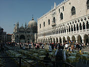 Дворец дожей в Венеции Итальянские архитектурные памятники раннего Возрождения находятся в основном во Флоренции; среди них — элегантный и вместе с тем простой в техническом решении купол собора Санта-Мария-дель-Фьоре (1436) и палаццо Питти, созданные Филиппо Брунеллески, определившего вектор развития архитектуры Ренессанса; дворцы Риккарди, построенные Микелоццо-Микелоцци, дворцы СтроциБенедетто да-Майяно и С. Кронака, дворцы Гонди (Джулиано да-Сан-Галло), дворцы Руччеллаи Леона Баттиста Альберти. В Римеможно отметить малый и большой венецианские дворцы Бернардо ди Лоренцо, Чертоза в Павии Боргоньоне, палаццо Вендрамин-Калерджи П. Ломбардо, Корнер-Спинелли, Тревизан, Кантарини и Дворец дожей в Венеции. К северу от Альп, а также в Испании, Раннее Возрождение наступает только в конце XV столетия, и его ранний период длится, приблизительно, до середины XVI века, впрочем, о создании шедевров в этот период в других странах говорить нельзя. Высокое Возрождение[править | править вики-текст]