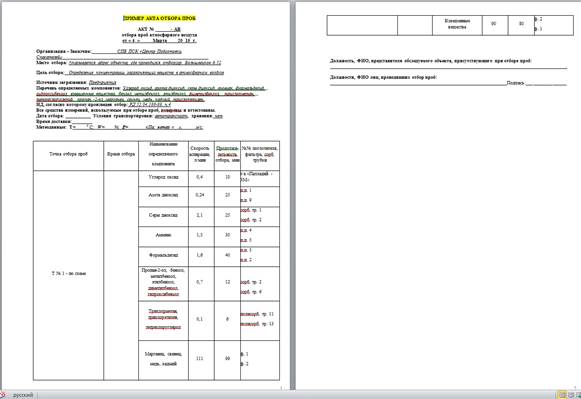 Акт отбора проб ⇐ ПредыдущаяСтр 2 из 2