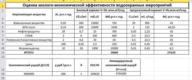 Оценка эколого-экономической эффективности водоохраных мероприятий