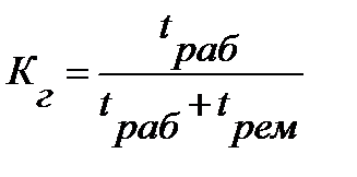 2. Коэффициент оперативной готовности – Ког – вероятность того, что объект окажется в работоспособном состоянии в произвольный момент времени, кроме планируемых периодов, в течение которых применение объекта по назначению не предусмотрено и, начиная с этого момента, будет работать безотказно в течение заданного интервала времени. Он характеризует надежность объектов, необходимость применения которых возникает в произвольный момент времени, после чего требуется безотказная работа. 3. Коэффициент технического использования – Кти – отношение математического ожидания интервалов времени приведения объекта в работоспособное состояние за некоторый период эксплуатации к сумме математических ожиданий интервалов времени пребывания объекта в работоспособном состоянии, простоях, обусловленных ТО и Р за тот же период.