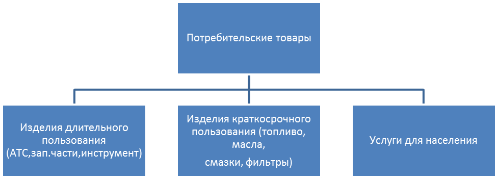 Рис.2 -энергия, -вспомогательные материалы и сырье, -деловые услуги. В дальнейшем в терминологии товарной продукции принято следующее условное разделение: -обобщенно под товарами будем понимать только изделия перерабатывающих отраслей экономики (автомобили, ГСМ, моющие средства); -остальную продукцию, которая также является товаром, будем называть в соответствии с классификационными группами (например, электрическая энергия, экспертные заключения, услуги по ТО и Р). Date: 2015-06-08; view: 1110; Нарушение авторских прав |