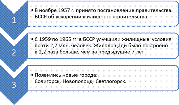 Ответ: Статистические данные свидетельствуют о процессе урбанизации – количественном росте городов и увеличения городского населения. Свидетельством тому, появление новых городов: Солигорска, Новополоцка, Светлогорска и развитие быстрыми темпами жилищного строительства за счёт возведения так называемых «хрущёвок» (панельного и блочного строительства). Факторы, которые обусловили развитие процесса урбанизации, стали: 1) отток сельского населения, особенно молодёжи, в город; 2) открытие огромных запасов калийных солей вСолигорском районе, что позволило развернуть в БССР широкомасштабную деятельность по выработке минеральных удобрений на построенных солигорских калийных комбинатах; 3) развитие в республике химической и нефтехимической промышленности, связанное со строительством крупных химических предприятий, среди которых Полоцкий нефтеперерабатывающий завод, Светлогорский завод штучного волокна. Билет №13 (Учитель истории Клысун Ольга Александровна) Date: 2015-06-08; view: 1392; Нарушение авторских прав |