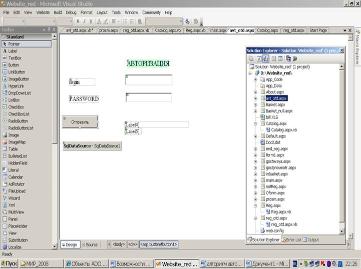 Imports Microsoft.VisualBasic Imports System.Configuration Imports System.Data 'подключаю классы работы с БД Imports System.Data.OleDb 'для использования ‘формата данных DataView Partial Class avt_otd Inherits System.Web.UI.Page