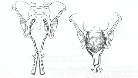 Задний вид затылочного предлежания. Внутренний поворот головки завершен. Головка плода находится на тазовом дне. Стреловидный шов - в прямом размере выхода, малый родничок располагается у копчика, задний угол большого родничка - под лоном; малый родничок расположен ниже большого. Щипцы накладывают в поперечном размере таза. Тракции производят в горизонтальном направлении (книзу) до тех пор, пока передний край большого родничка не будет соприкасаться с нижним краем лонного сочленения (первая точка фиксации). Затем делают тракции кпереди до фиксации области подзатылочной ямки у верхушки копчика (вторая точка фиксации). После этого рукоятки щипцов опускают кзади, происходит разгибание головки и рождение из-под лонного сочленения лба, лица и подбородка плода.